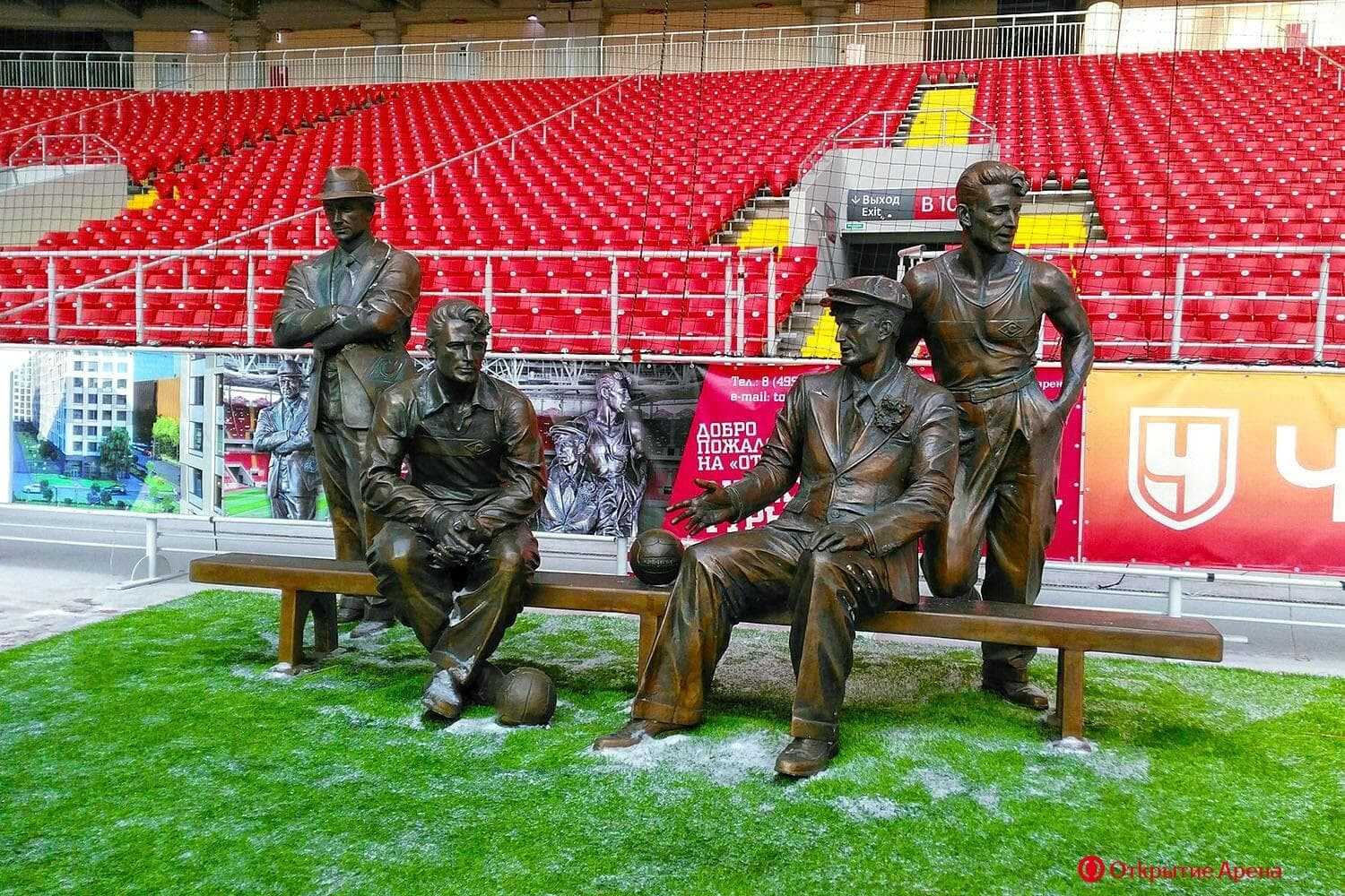 Напротив Северной трибуны «Открытие Арены» установлен памятник четырем братьям Старостиным. Напомним, что эти футболисты стояли у истоков формирования «Спартака», и внесли неоценимый вклад в появление и развитие клуба. Создателем скульптуры является Александр Рукавишников, который также является автором знаменитого памятника Льву Яшину у стадиона московского «Динамо».