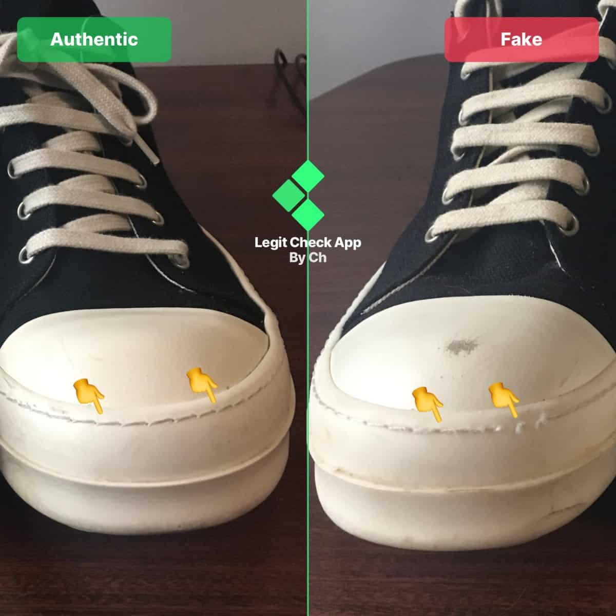 Мы имеем в виду, что у поддельных пар Rick Owens Ramones область носка выглядит более изогнутой и изогнутой, чем у аутентичных пар Rick Owens Ramones.