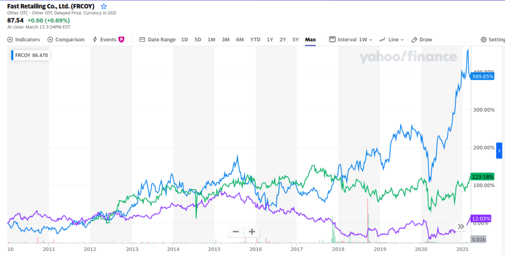 По всему видать, что акционерам нравится стратегия Fast Retailing. В разгар пандемии компания не стала ждать, пока «золотой миллиард» снова начнёт тратить свои деньги. Вместо этого ориентировалась на Китай, который стремительнее всех оправлялся от спада, вызванного короной. Не прогадала.
