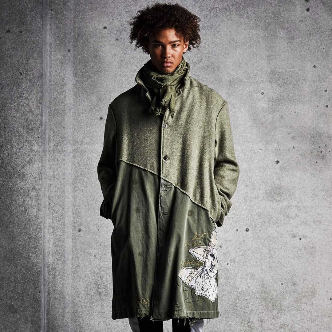 Основатель и дизайнер бренда японец Юта Хосокава работает с винтажными военными тканями, полученными из списанных в утиль палаток и форм. Из этих материалов, сохранивших следы носки — потёртости, заломы, надписи, — в ателье бренда создают мужественные вещи, вдохновлённые военной и рабочей эстетикой.