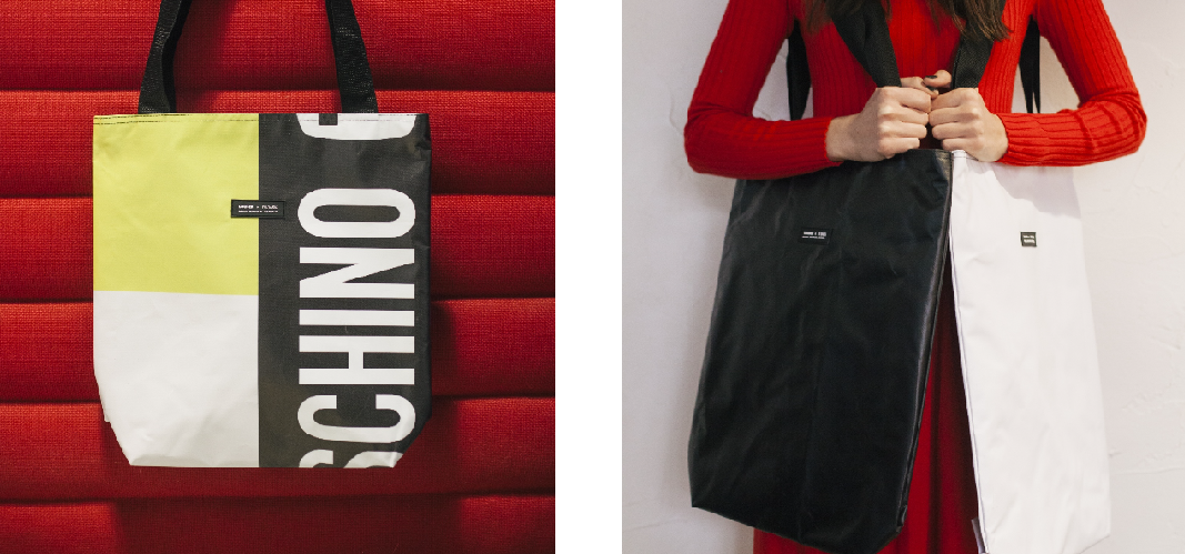 POLYARUS x Винный шкаф. Шопперы из баннеров и баннерной сетки с городского мероприятия, посвящённого дню победы