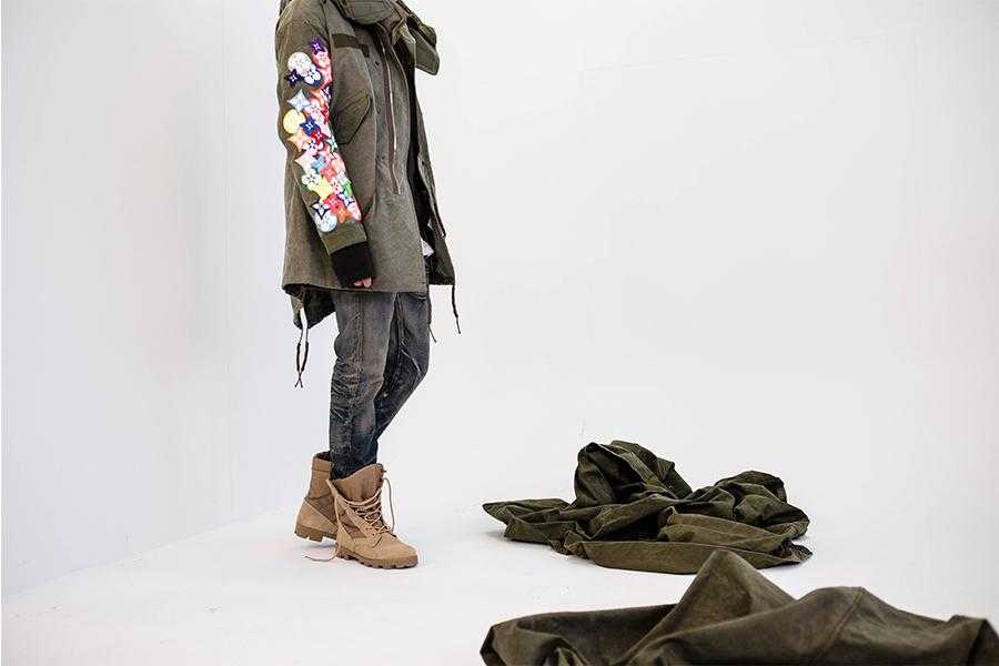 Чтобы придать красок и жизни вещам исключительно цвета хаки, команда марки вручную добавляет аппликации со смайлами и армейской тематикой, крупные принты и вышивки с надписями. На выходе получаются запредельно дорогие вещи и аксессуары c ограниченными тиражами и узкой дистрибуцией.