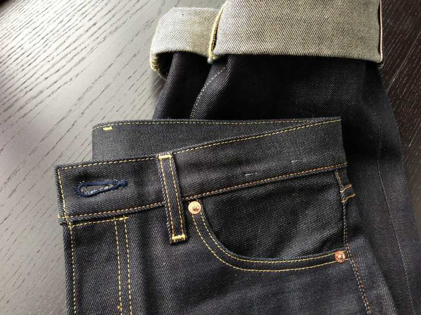 Кусок денима с кромкой (внизу справа), вшитый в джинсы, является торговой маркой винтажных джинсов. Знаки на заклепках, скрытые за задними карманами, являются одним из примеров детального подхода к дизайну.