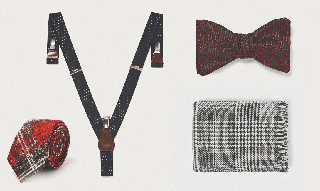 Аксессуары делают даже самый консервативный образ интересным, а в нашем случае некоторую сухость английского стиля могут разбавить нагрудные платки, шерстяные бабочки и подтяжки, которые, если уж быть дотошными, обязательны для английского костюма. Весь образ можно приправить зонтом-тростью и клетчатым шарфом.