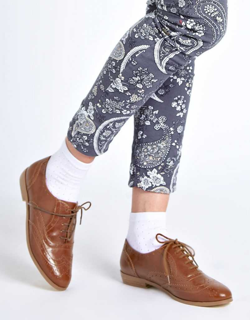 Красивый ансамбль получится и с платьем. Это лучший ответ на вопрос, с чем носить броги в теплую пору года. Выбирайте короткое платье, дополняйте получившийся ансамбль ярким аксессуарами: шляпа большая сумка, очки или, как вариант, платок на шею. Для более праздничных образов подберите бархатные или металлизированные модели туфель, чтобы придать луку некого шарма и лоска.