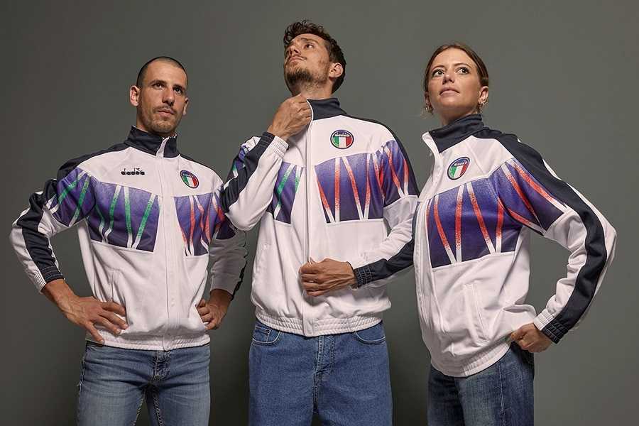 Сама коллекция состоит из спортивной куртки, поло и пары носков, воссоздающих очаровательный дизайн 90-х. Все изделия украшены логотипом итальянского флага Diadora с ярко-синими акцентами, так тесно связанными с национальной сборной Италии. На одной из рубашек поло и спортивной куртке изображены треугольные мотивы флагов, которые идеально соответствуют стилю графического дизайна 90-х годов. Одежда в коллекции произведена тем же поставщиком, что и в 1994 году, так что вы знаете, что это настоящая сделка.