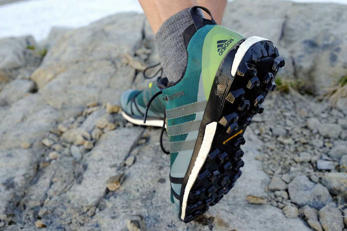 When we first saw the Terrex Agravic’s at Outdoor Retailer, the exposed sections of the midsole along the instep and outside of the shoe immediately stood out. These strips of white foam are the “Boost” cushioning and designed to offer a soft feel and excellent energy return for, as Adidas claims, “endless energy”. While I take issue with the endless energy statement—perhaps I just need to spend more time training—I do agree that the ride is exceptionally smooth, responsive, and comfortable.
