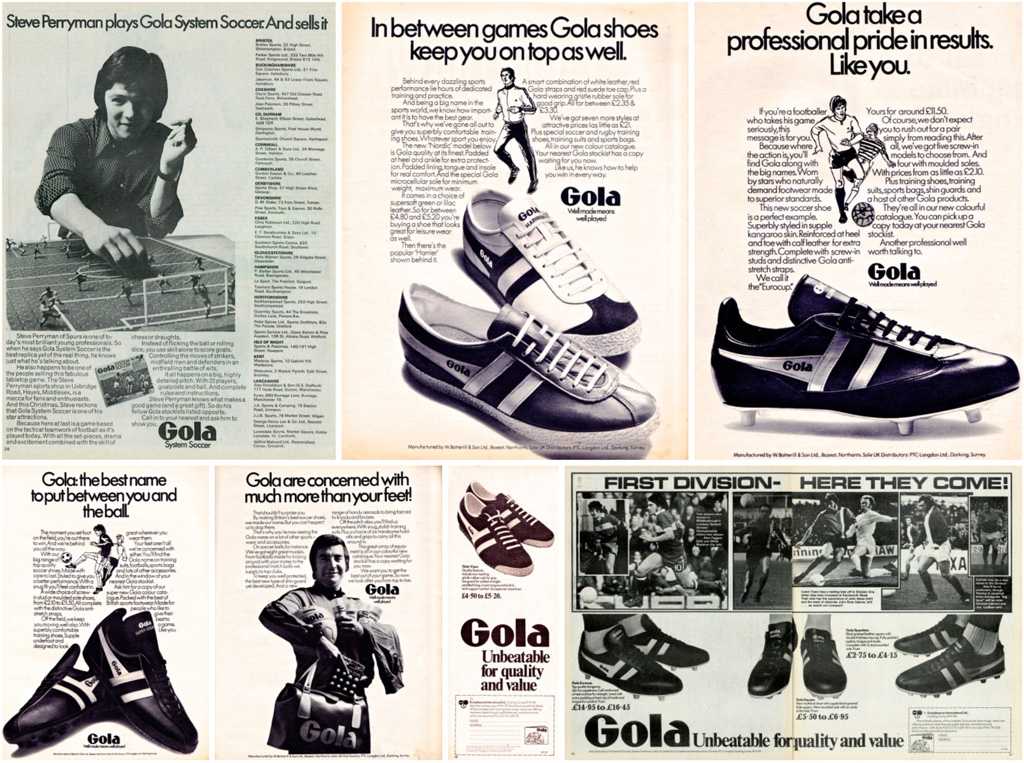 Джерри Фрэнсис, Эмлин Хьюз, Бобби Тэмблинг — эти и другие футболисты оставались верными бренду на протяжении многих лет. Они носили бутсы Gola и играли мячами Gola, однако больше всего запомнился один аксессуар — виниловая сумка Gola Bag. Она часто попадала на рекламные плакаты вместе с бутсами, создавая прочную ассоциацию между миром футбола и повседневной вещью, которую можно использовать за пределами игры. Как результат — сумка стала культовой вещью среди футбольных фанатов.