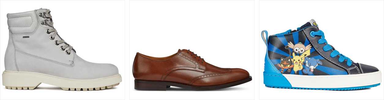 - Детская коллекция представлена несколькими группами – от стильных кроссовок до элегантных туфель.