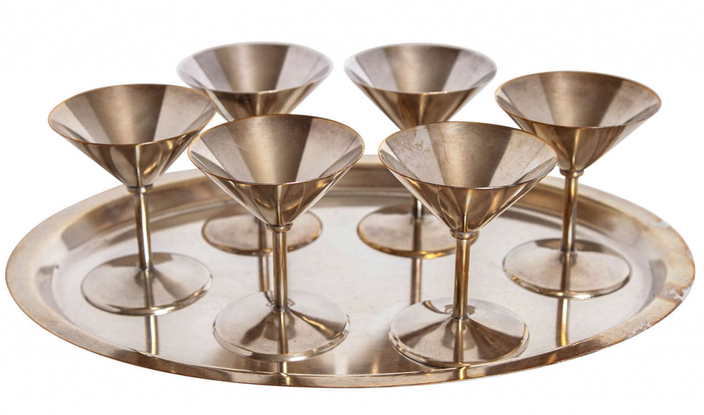 Комплект для шампанского, стекло, основной металл — сплав оловянный