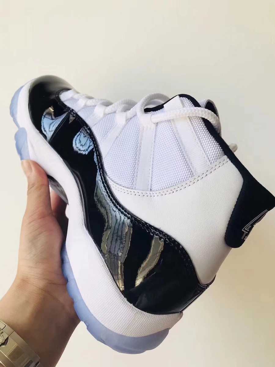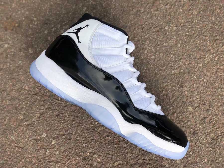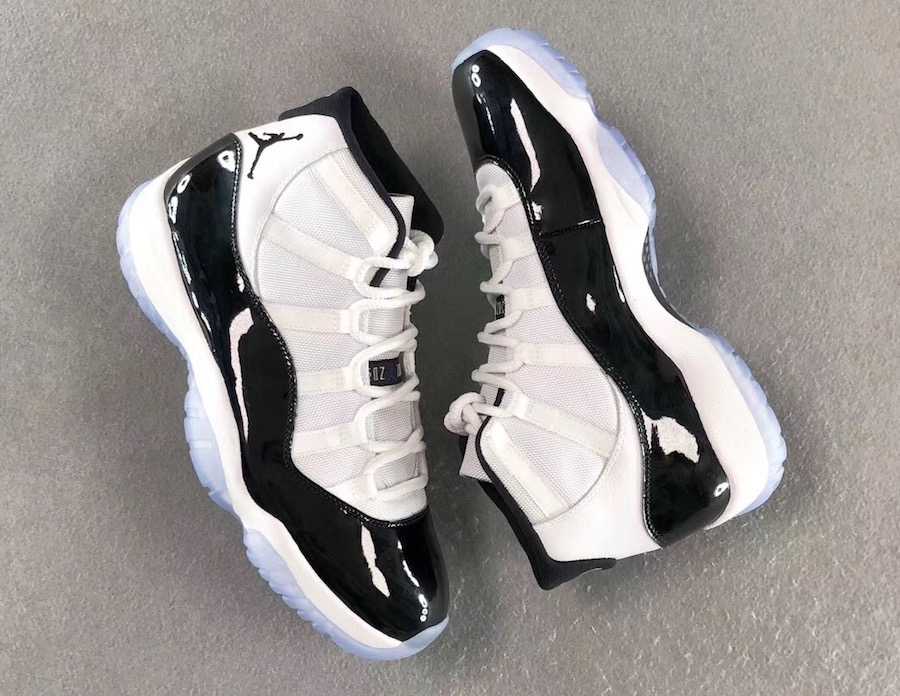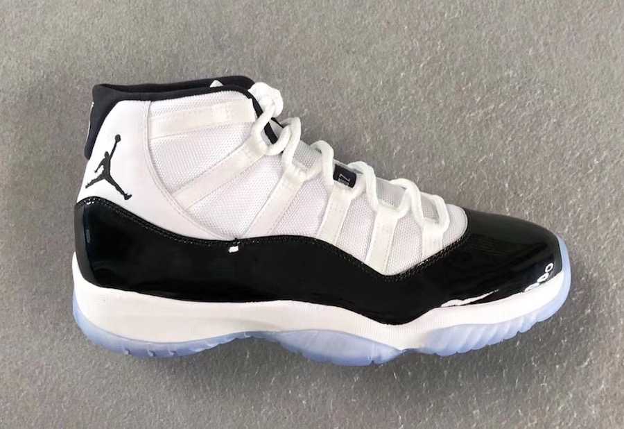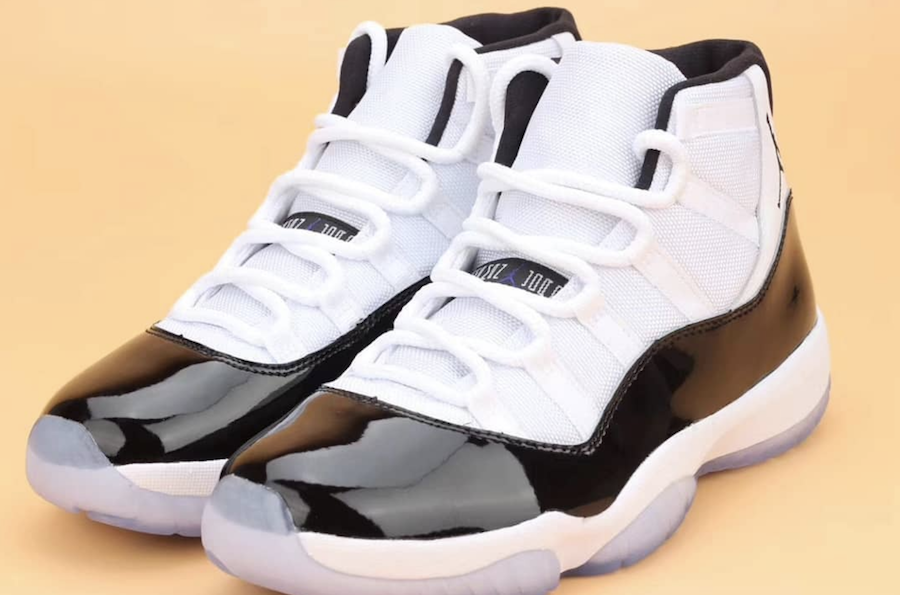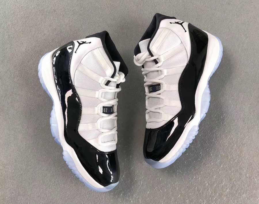 UPDATE: Here a fist full look at the 2018 “Concord” Air Jordan 11 that comes with a high-cut patent leather and 45 on the heels.