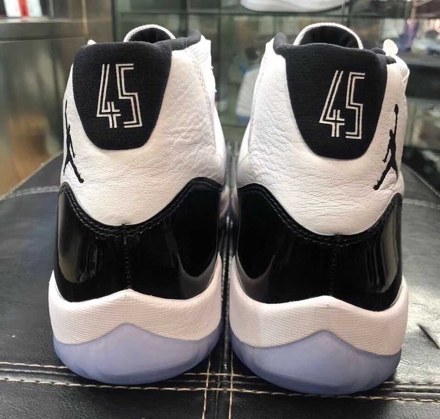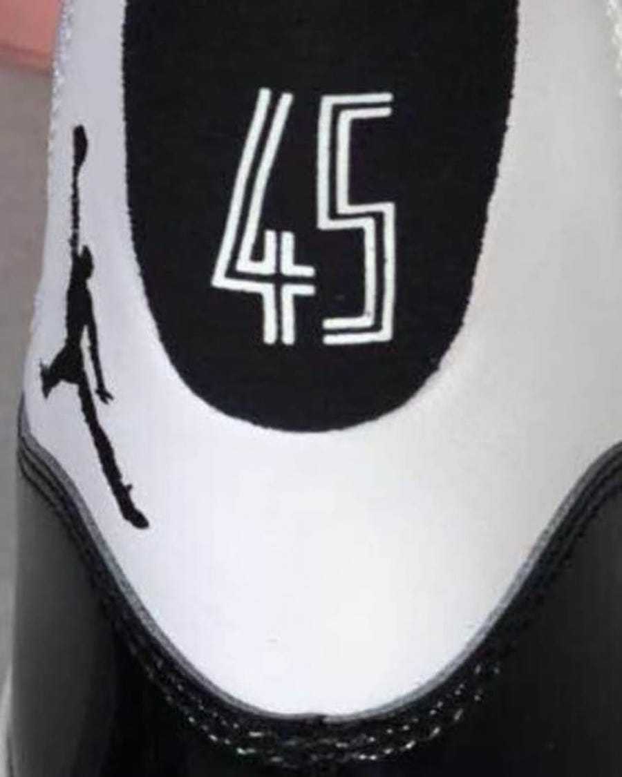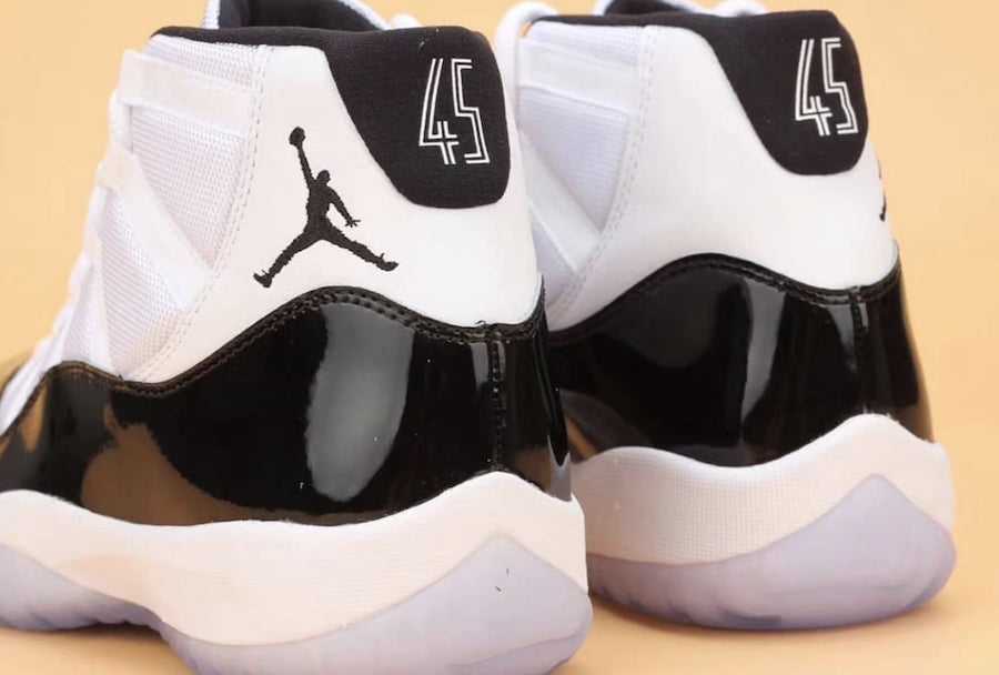 UPDATE: First look at the heel of the “Concord” Air Jordan 11 that features the number “45” with its high-cut patent leather. Photo via pinoe77.