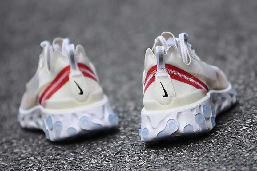 Кроссовки «Найк Реакт Элемент 87» совместили авангардный дизайн, основанный на прошлом и настоящем, с инновационной технологией React — добавив к этому результат экспериментов и компьютерного моделирования. Прозрачный верх оголил часть внутренностей, сделав ранее недоступное взгляду видимым — точно также, как с воздушной подушкой Air Max в 1987 году.