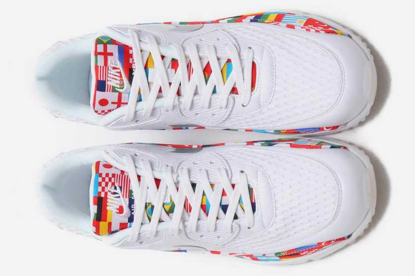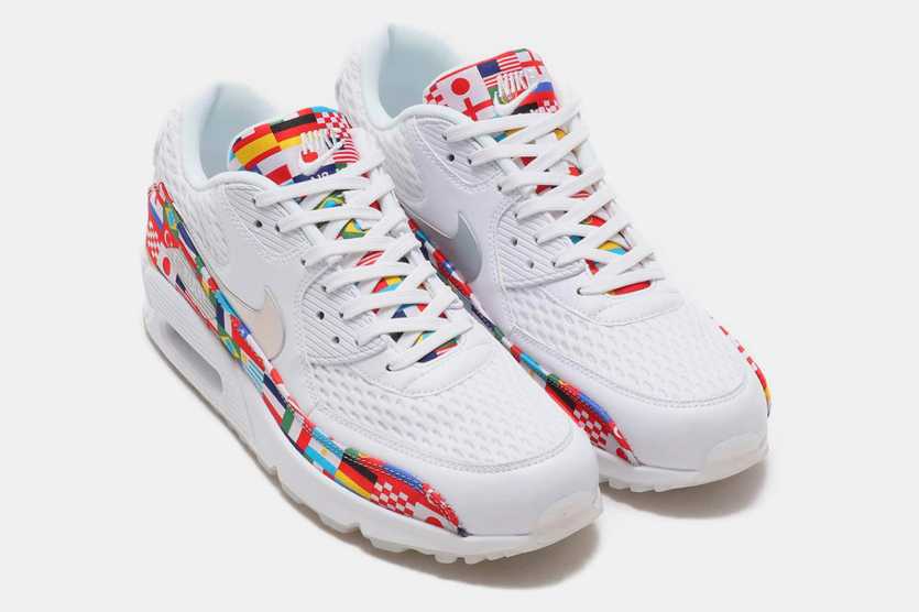 Дизайнеры Nike не устают придумывать новые расцветки для классических AirMax. В свете мирового чемпионата по футболу новые Nike Air Max 90 EM с флагами стран дополнят образ любого футбольного фаната.