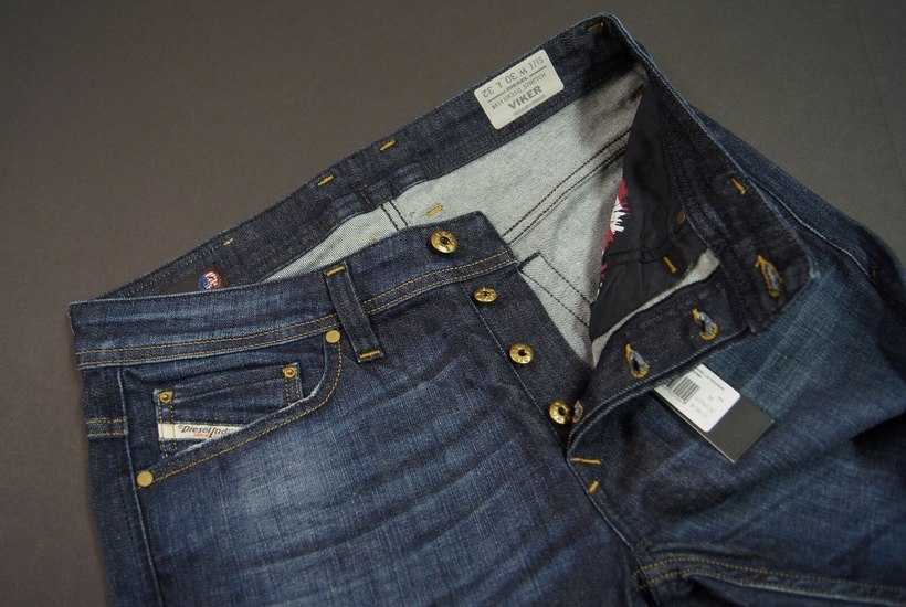 - Поддельные модели имеют этикетку из ткани или экокожи. Бирка оригинальных джинсов по индивидуальному заказу часто имеет выпуклую структуру, но тщательно прошита со всех сторон.