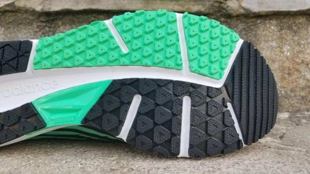 Средний слой подошвы выполнен из пены REVlite. На ощупь она очень жесткая – как при ощупывании руками, так и под ногами. Предметом гордости New Balance является ее небольшой вес, но при этом она остается такой же прочной, как и у кроссовок, рассчитанных на тяжелые нагрузки.