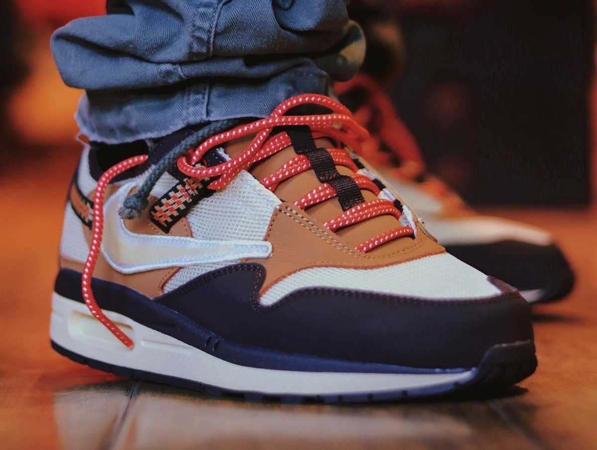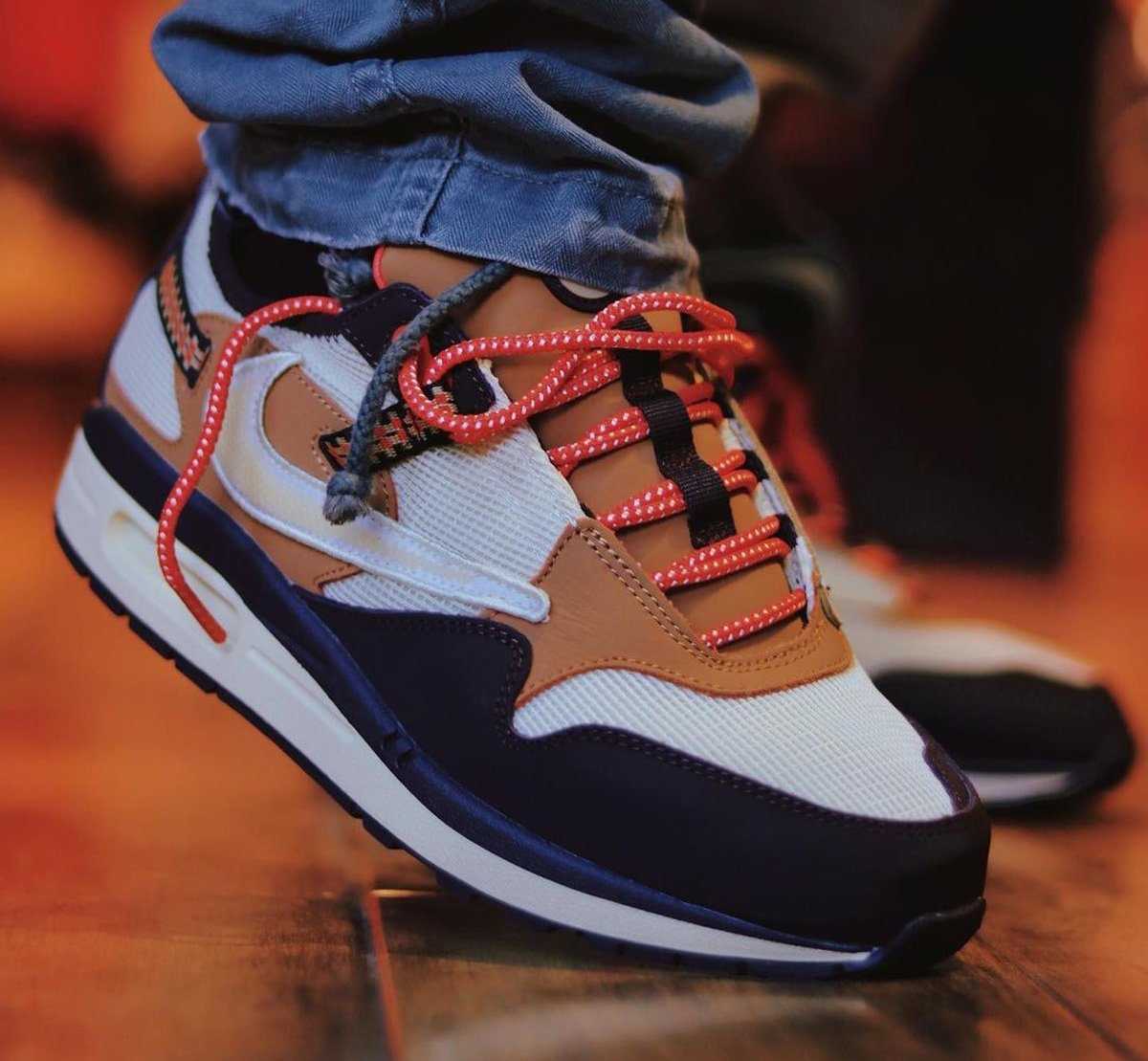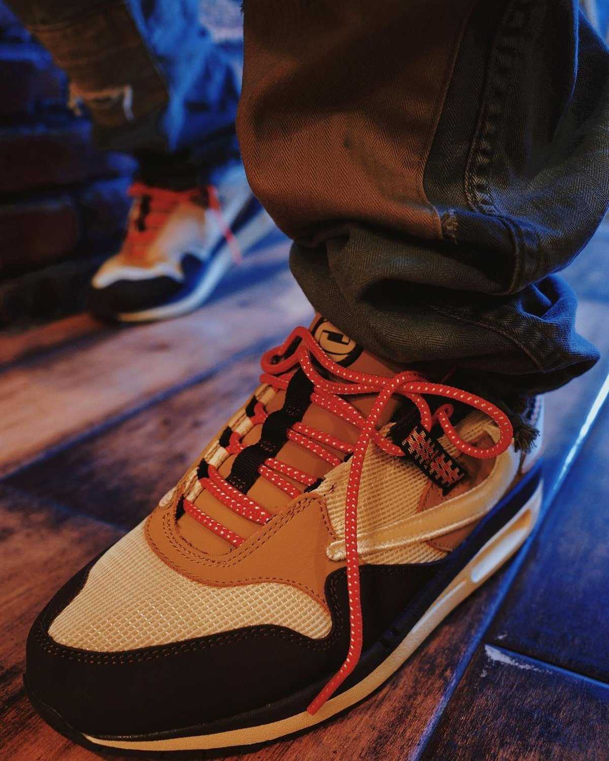 UPDATE 9/7: On-feet photos of the Travis Scott x Nike Air Max 1 “Baroque Brown” via ytlr3.