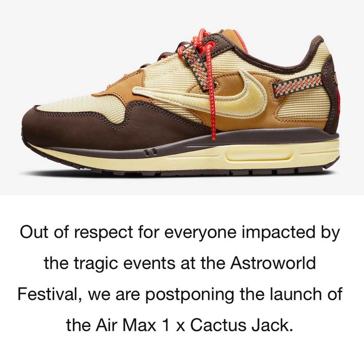 UPDATE 11/15: Nike announces that the release of the Travis Scott x Air Max 1 “Baroque Brown” and “Saturn Gold” have been postponed out of respect for everyone impacted by the tragic events of the Astroworld Festival. A release date will be announced at a later date.