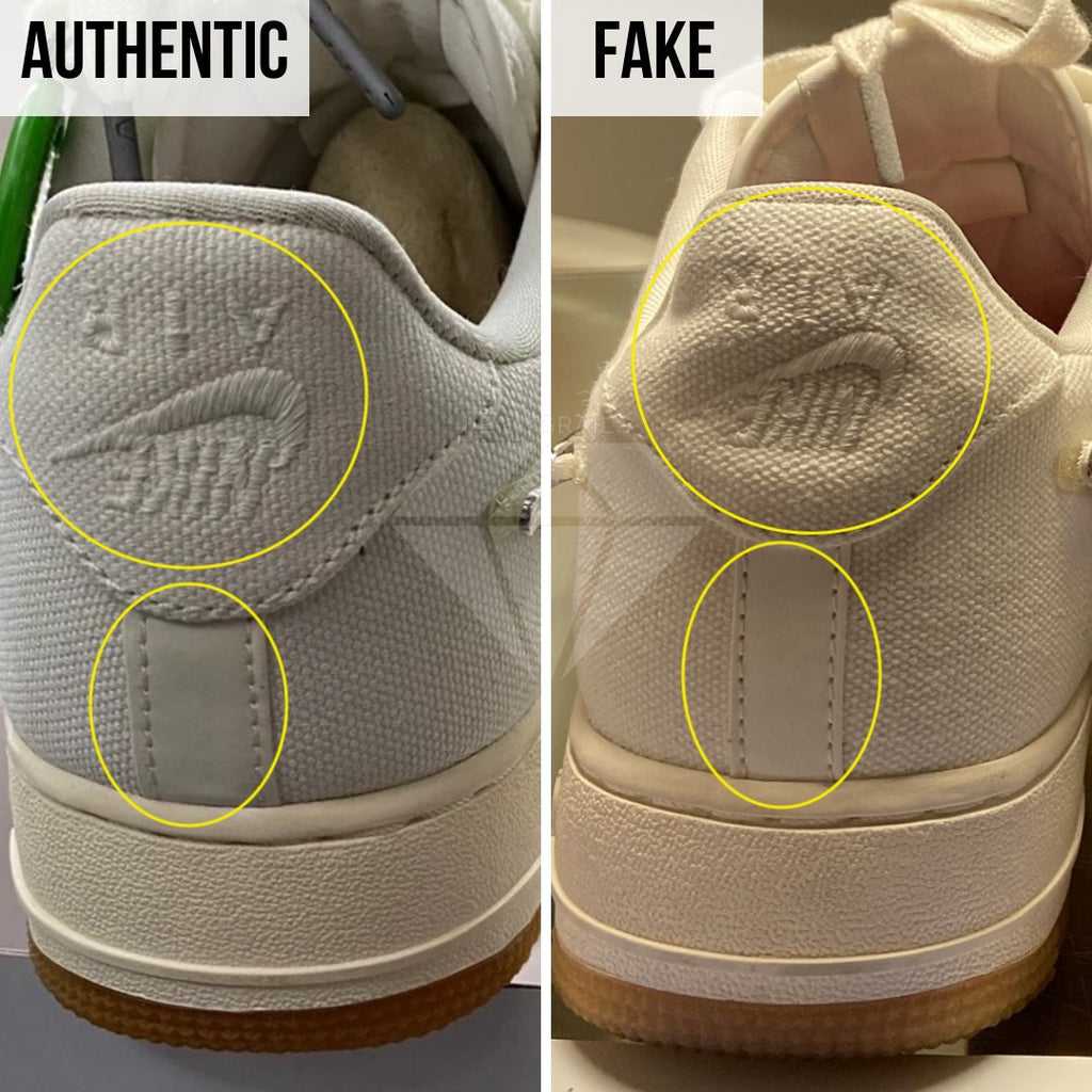 Moving further in our Travis Scott Air Force 1 Sail authentication process, it would be useful to verify the heel. There would be a few things to check in the heel area.