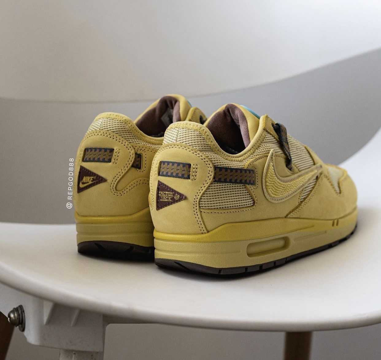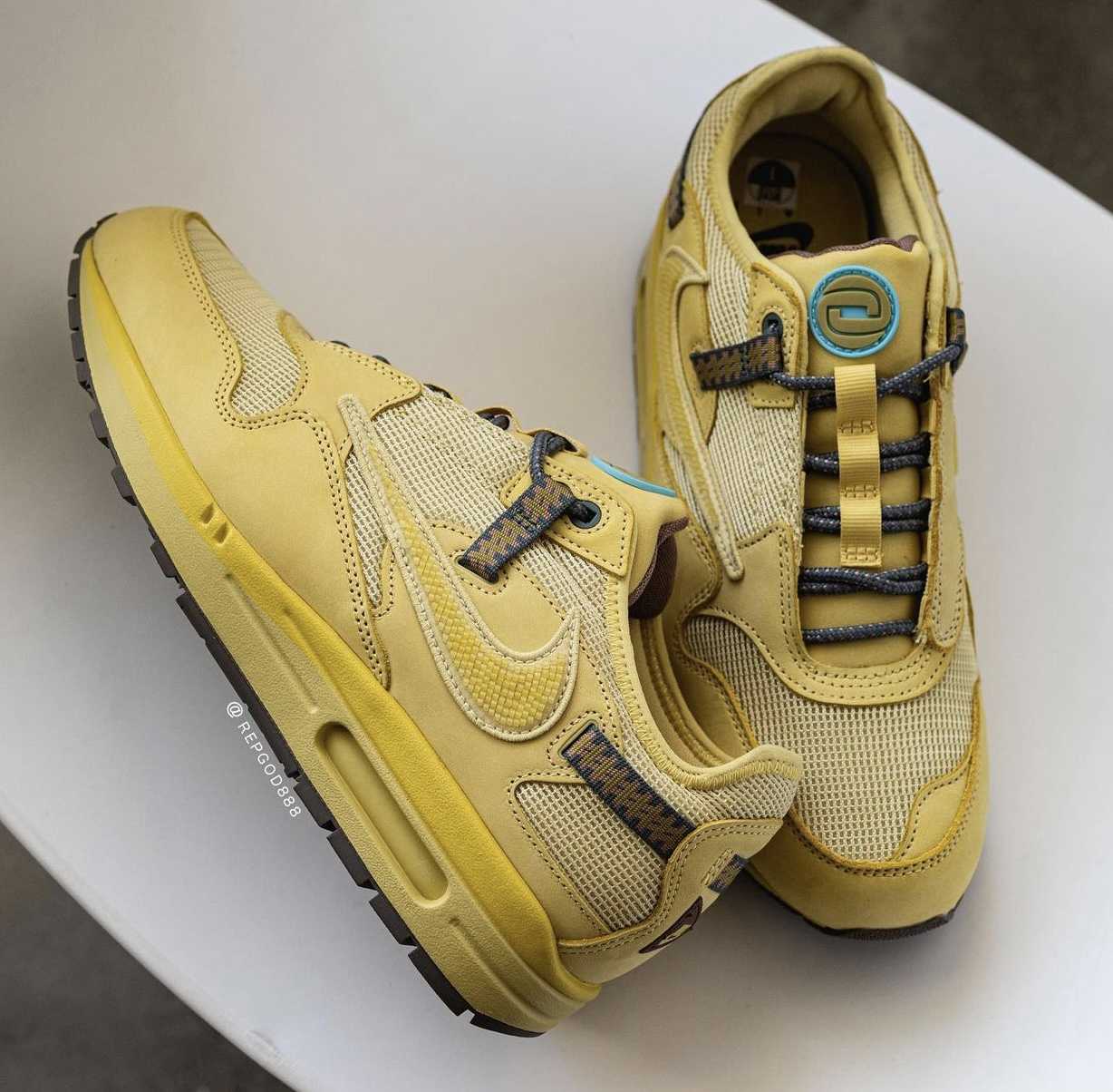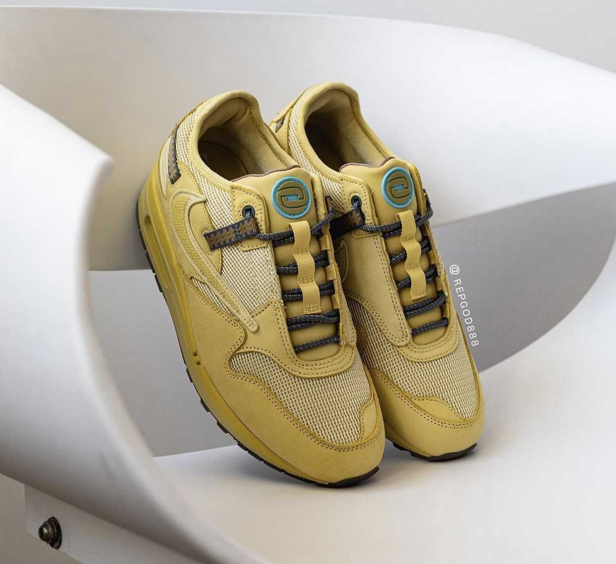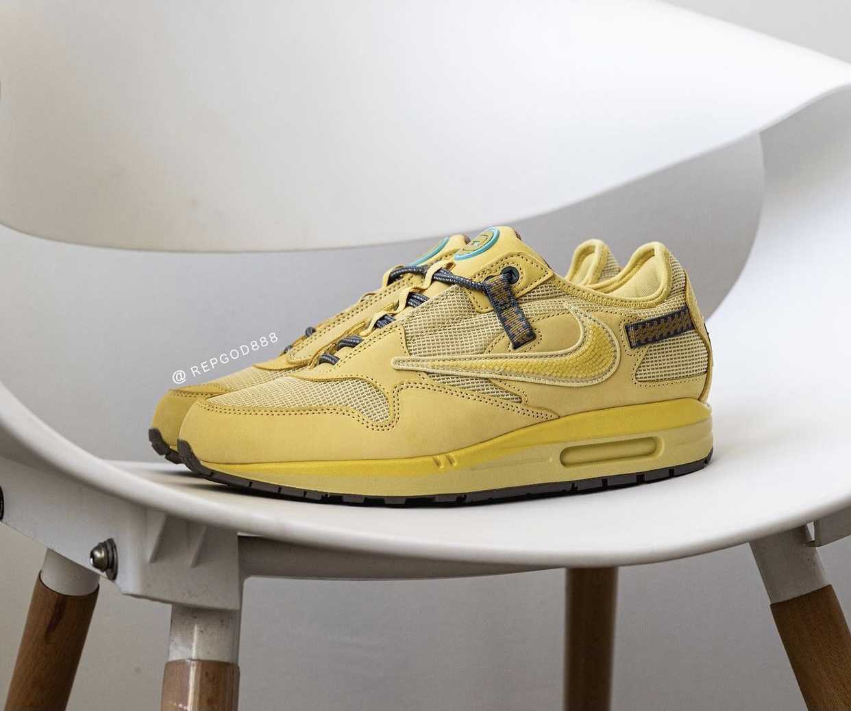 UPDATE 8/28: Detailed look at the Travis Scott x Nike Air Max 1 “Saturn Gold” via repgod888.