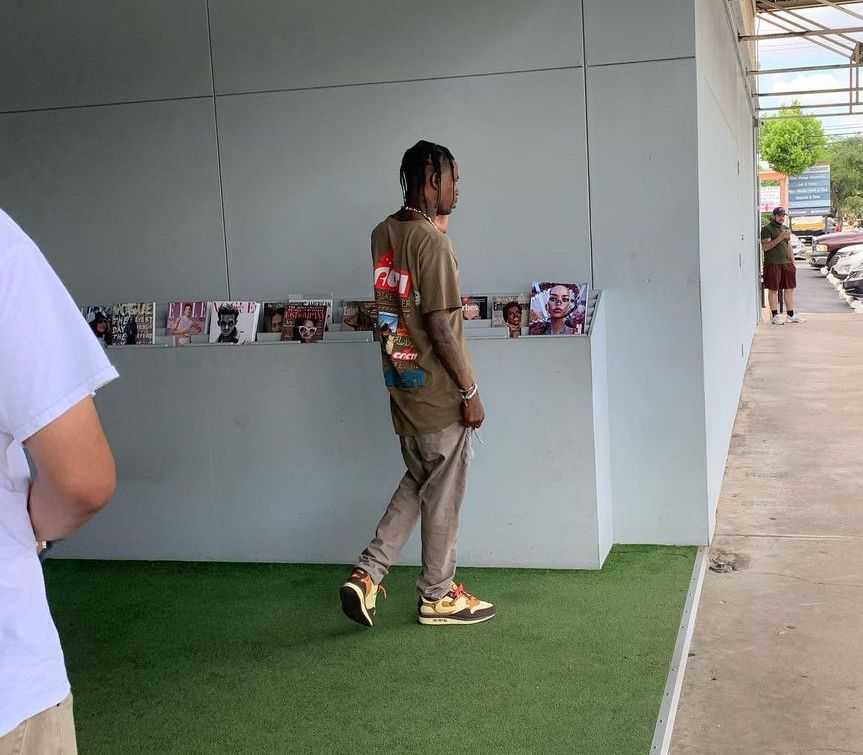 UPDATE 5/13: New images of Travis Scott wearing his upcoming Nike Air Max 1 “Cactus Jack” collab at Space Village in Houston. Check out the photos below via 3500savoy.