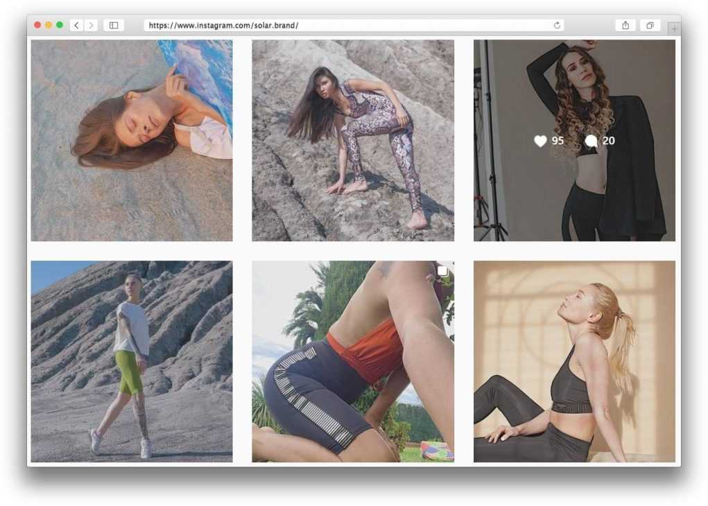 Сибирский бренд одежды для йоги и фитнеса появился в 2018 году. Марка поддерживает идеи бодипозитива и феминизма и говорит, о том, что «каждая девочка прекрасна и безупречна от рождения». Марка выпускает спортивные топы, худи для бега, велосипедки и комбинезоны. Дизайн продуман так, чтобы занятия были действительно комфортными: например, в легинсах от Solar есть карман для смартфона, чтобы бегать под музыку или тренироваться с трекером.