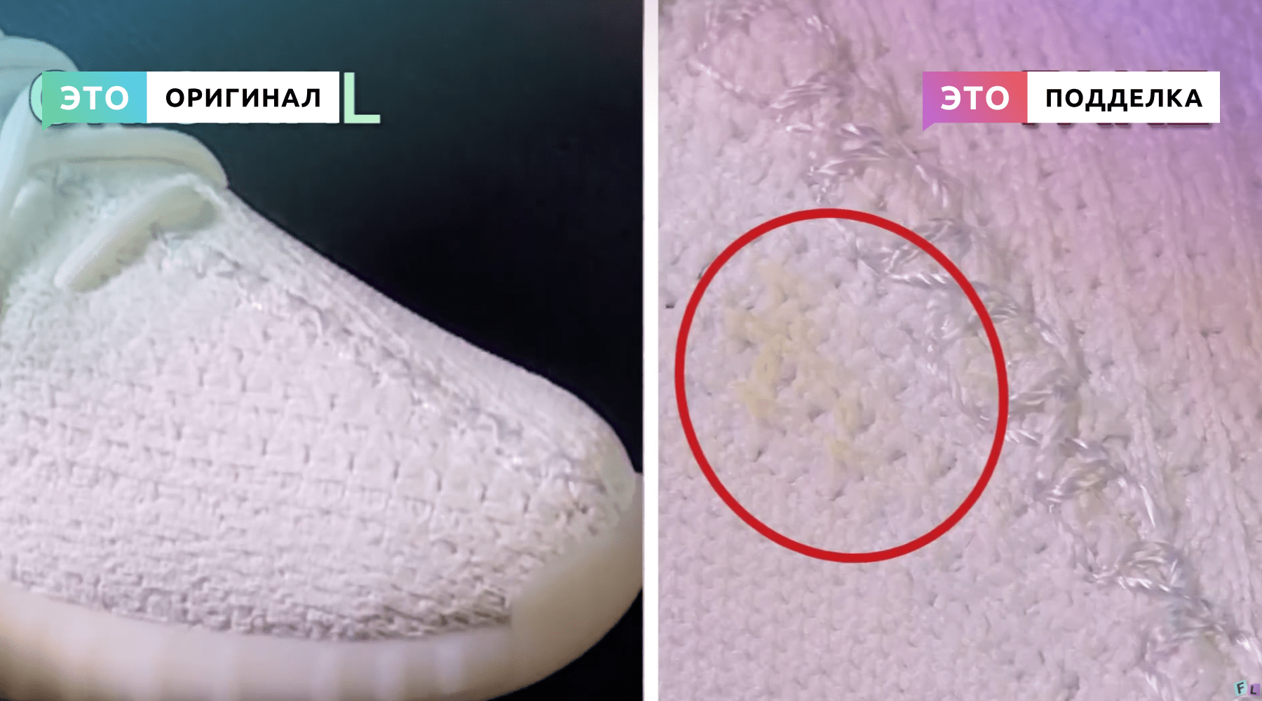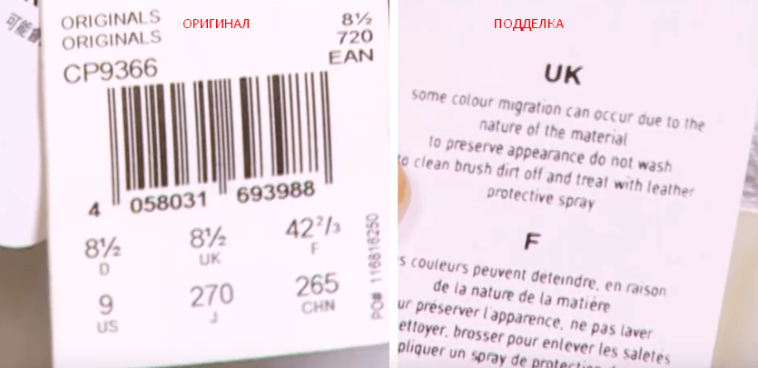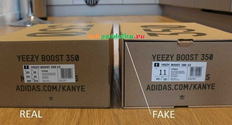 Ярлыки на оригинальных и поддельных Yeezy Boost 350