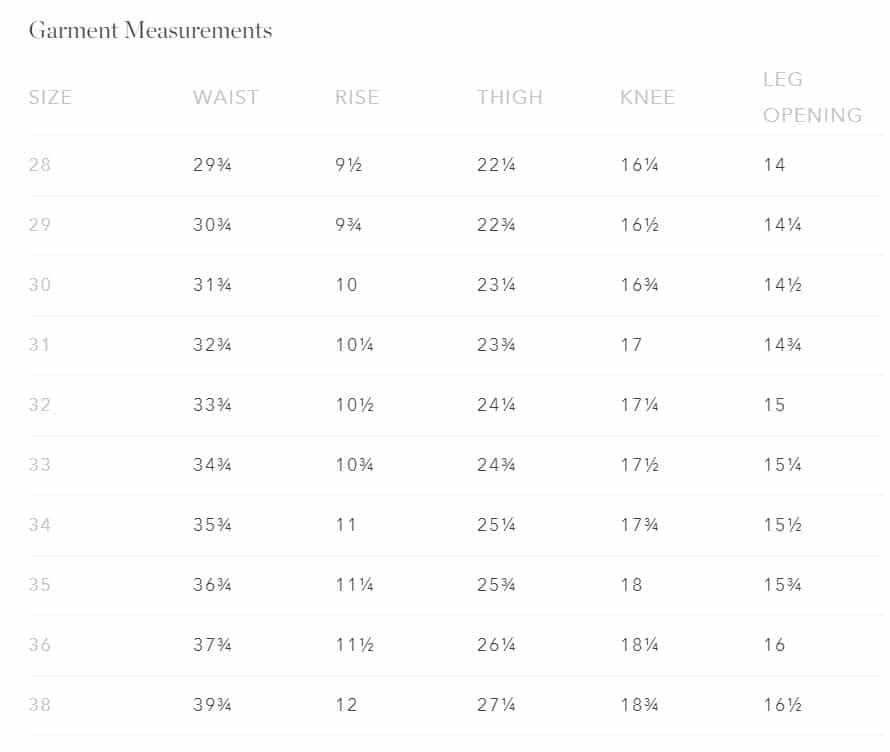 Taylor Stitch Pants Sizing