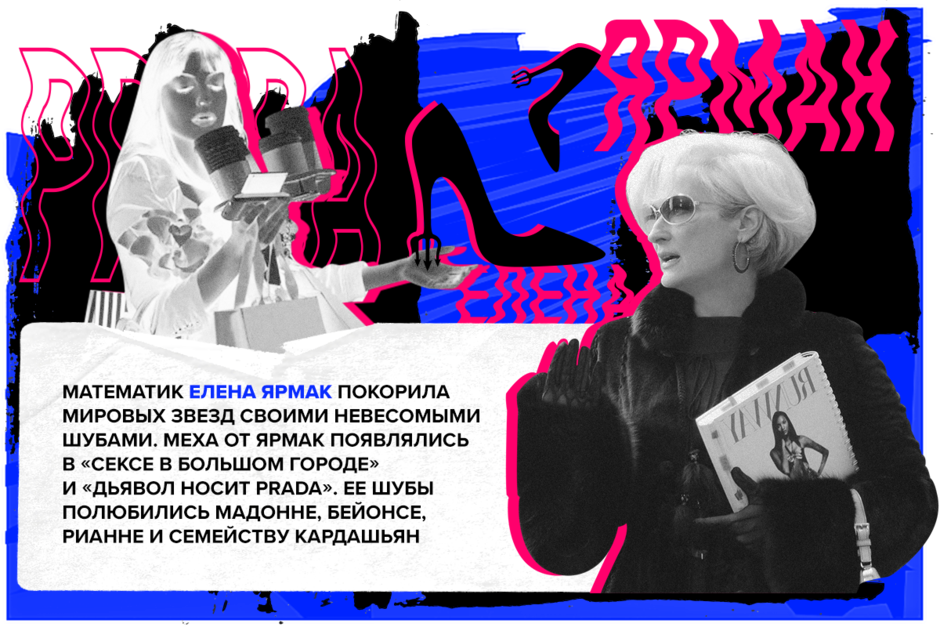 Создательница шубы — Елена Ярмак. Она известна как один из самых популярных фэшн-творцов 1990-2000-х годов, однако карьера в мире моды началась для нее довольно спонтанно. Ярмак окончила Киевский государственный университет и работала по специальности в кибернетическом НИИ, стала кандидатом математических наук.