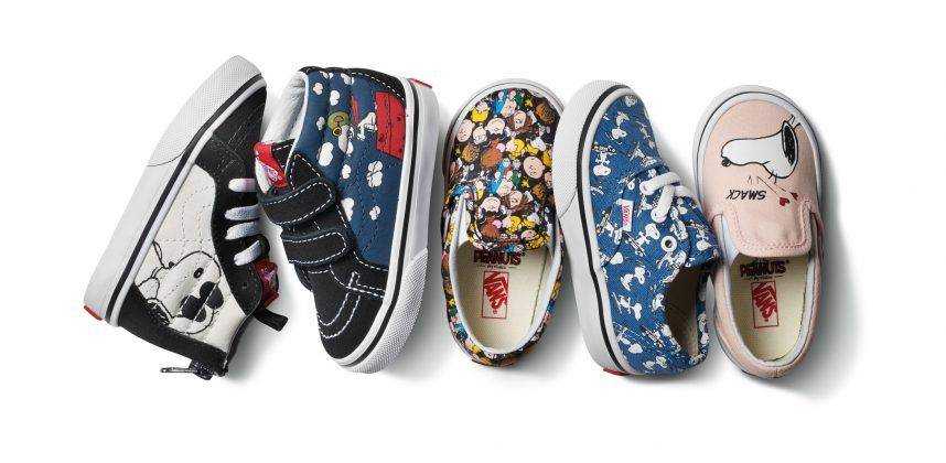 Ассортимент обуви представлен всеми классическими моделями Vans: Old Skool, Slip-On, Sk8-Hi и Authentic. Одни из Old Skool посвящены памятному образу Чарли Брауна: боковая сторона частично выполнена в желтом цвете, а типичный для Vans Sidestripe напоминает нарисованную от руки полоску на рубашке главного героя. Также на них присутствует фраза «Good Grief» – по слову на правом и левом язычке. В другой вариации Old Skool представлен эксклюзивный принт, на котором Снупи катается на скейте, и, если присмотреться, можно заметить, что он держит в руках шахматную доску с нарисованной собачьей миской. Все герои Peanuts, включая Лайнуса (Linus), Люси (Lucy), Пигпена (Pig Pen) и других, изображены в сплошном коллаже на модели Slip-On.
