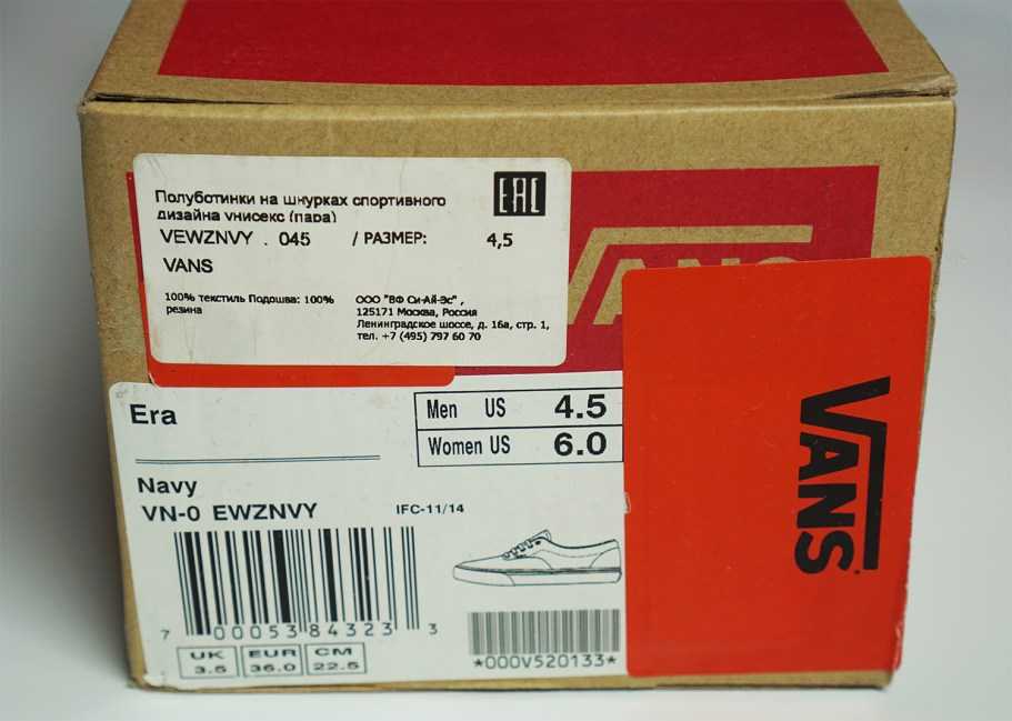 Как определить оригинальные Вансы? Нужно проверить данные на коробке и на кедах. Они должны совпадать.