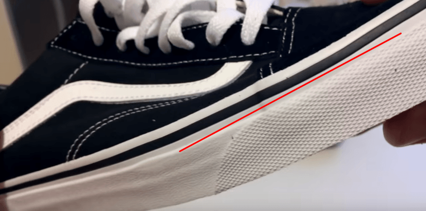 Полоска, которая идёт по всей длине подошвы кед ровная. У подделок она нанесена не аккуратно.