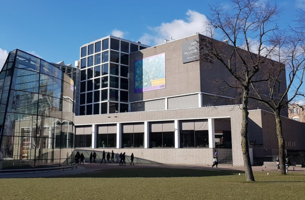 Дизайн музея Ван Гога был заказан голландским правительством в 1963 году голландскому архитектору и дизайнеру мебели Герриту Ритвельду . Ритвельд умер год спустя, и строительство не было завершено до 1973 года, когда музей открыл свои двери. В 1998 и 1999 годах здание было отремонтировано голландским архитектором Мартьеном ван Гуром а также было добавлено выставочное крыло японского архитектора Кишо Курокавы . В конце 2012 года музей был закрыт на реконструкцию на шесть месяцев. За это время в Эрмитаже Амстердама было показано 75 работ из коллекции .