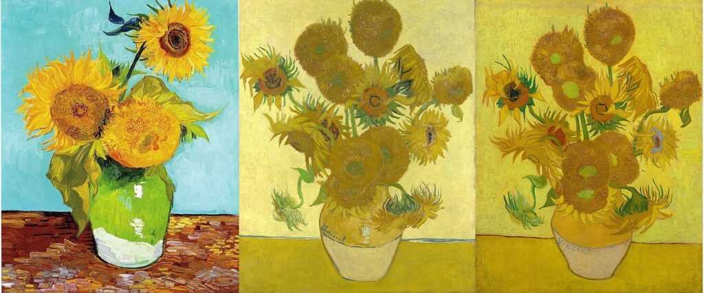 подсолнухs — это не просто одна картина, а две целые серии из нескольких картин с подсолнухами. Чаще всего, когда кто-то ссылается на «Подсолнухи» Ван Гога, они говорят о сериале, который он создал в Арле, состоящем из четырех начальных версий и трех повторений одной и той же идеи.Менее известны «Парижские подсолнухи», которые он создал, когда жил со своим братом в Париже между 1886 и 1888 годами. Эти подсолнухи, менее торжествующие и не полностью распустившиеся, тем не менее впечатляют, и их можно найти в музеях, в том числе в Метрополитене. в Нью-Йорке, музей Креллер-Мюллер и (конечно же) музей Ван Гога в Амстердаме.