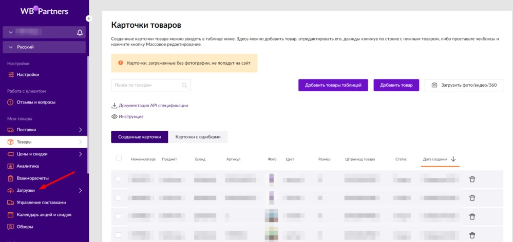 Документы тоже загружаются через раздел «Загрузки», только в этом случае нужно выбрать «Загрузка сертификатов». После этого ждете, когда модератор WB проверит документы.