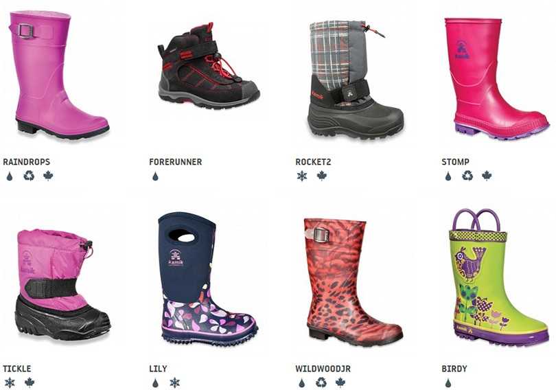 | Kamik | Канадский производитель, выпускает обувь из пористого материала, который обеспечивает воздухообмен, но не пропускает влагу. Фирма предлагает прогулочные и спортивные модели. |