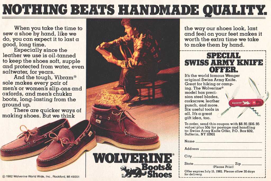 За последние два десятка лет компания, начинавшая со скромного магазина кожи, купила бренды Sperry Top-Siders, Sebago и даже Saucony. 85% обуви производится зарубежом, однако фабрики в США, включая родной Рокфорд в Мичигане, до сих пор работают и выпускают премиальные модели. Среди них — Wolverine 1000 Mile Boot, ботинки, основанные на архивных дизайнах и дополненные современными технологиями, включая подмётку из резины Vibram.