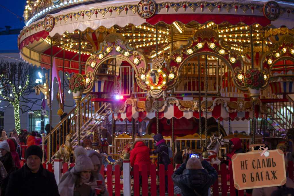 В сезоне 2021/22 году здесь открылось нарядное колесо обозрения и карусели. Можно просто прогуляться пешком вдоль украшенных еловых аллей или перекусить в одном из фудтраков. Из прекрасного: посередине столиков есть огонь для согрева рук.