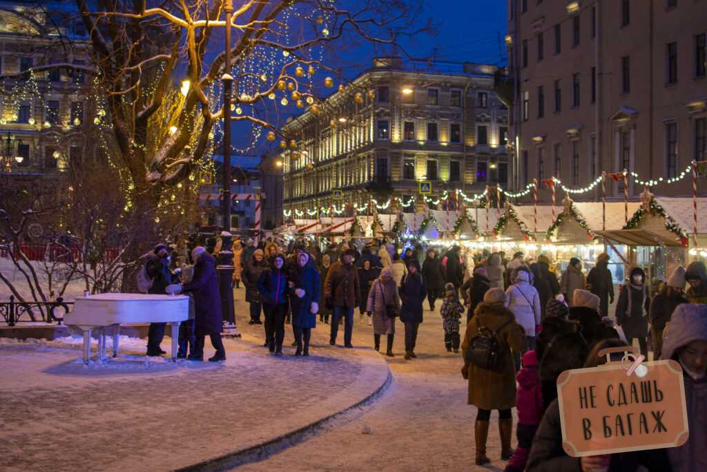 С Невского проспекта поверните по Малой Садовой или Караванной улице. Если вдруг не знали, Малая Садовая — центральная пешеходная улочка Питера, где традиционно также проходит ярмарка. Здесь же можно погреться в одной из кафешек.