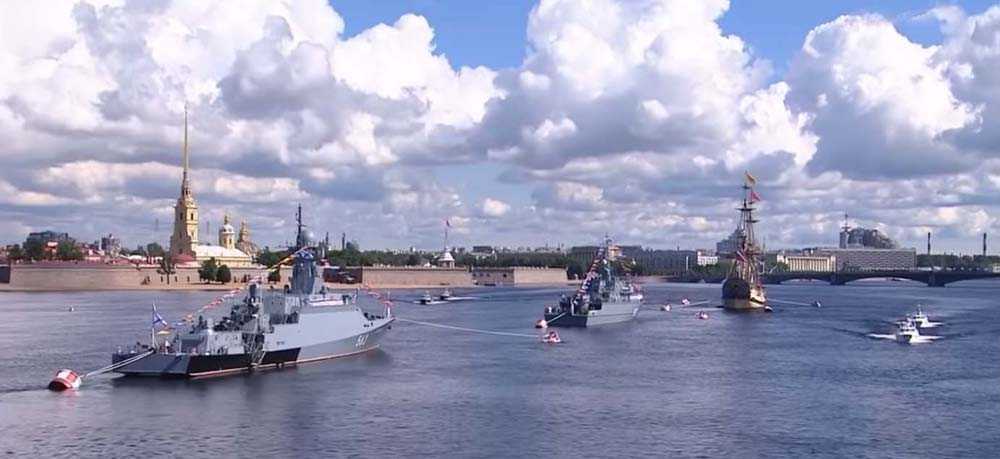 Парад и салют на День ВМФ в Санкт-Петербурге с борта теплохода