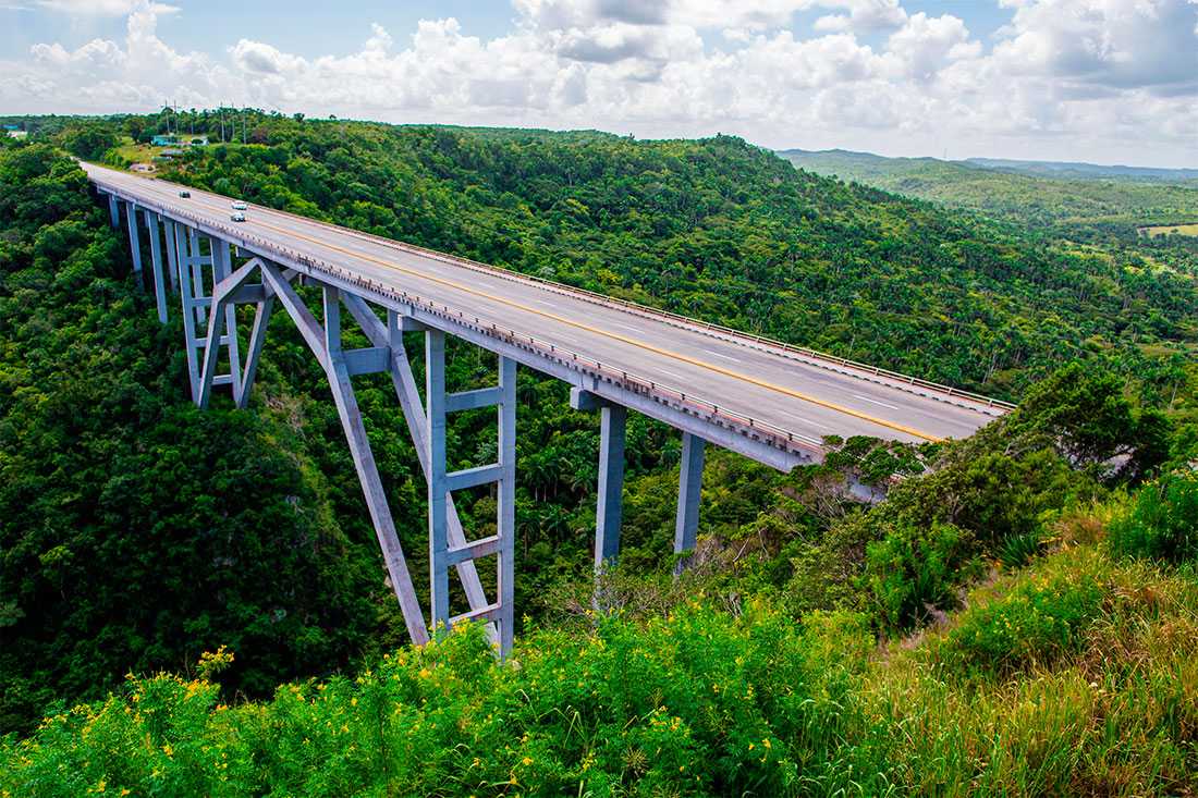 Мост Бакунаягуа построен, чтобы сократить путь от Гаваны до Матансаса и Варадеро. Строительство было запущено в 1957-м и растянулось на два года. Пришлось потрудиться, ведь мост прокладывали над глубокой долиной. Высота конструкции составила 103 м, длина – 314 м. Бакунаягуа – не только объект инфраструктуры и красивая архитектурная делать ландшафта, а еще и туристический объект.