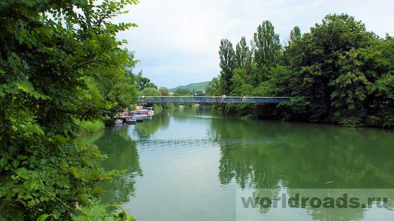 Попасть сюда можно по мосту (довольно далеко идти вдоль реки). Из центра по Ореховой улице через парк (1,2 км).