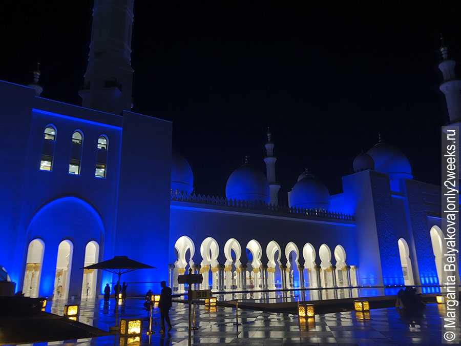 Мечеть Шейха Зайда в Абу-Даби в вечернем освещении.