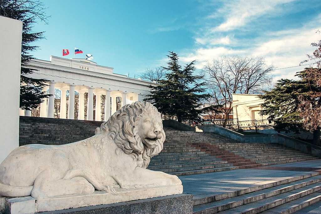 Графская пристань – это главные морские ворота Севастополя. Говорят даже, что она – одна из самых красивых в Европе. Мы честно поискали какой-нибудь рейтинг, не нашли, но ответственно заявляем: если бы такой рейтинг был, Графская пристань обязательно бы вошла в топ. Ну сами посудите – итальянские львы (желание – желание! – не забудьте загадать), широкая гранитная лестница и изящная колоннада в античном стиле. И котики! Котики же! Жирненькие севастопольские котики, выстроившиеся в очереди у рыбацких суденышек.
