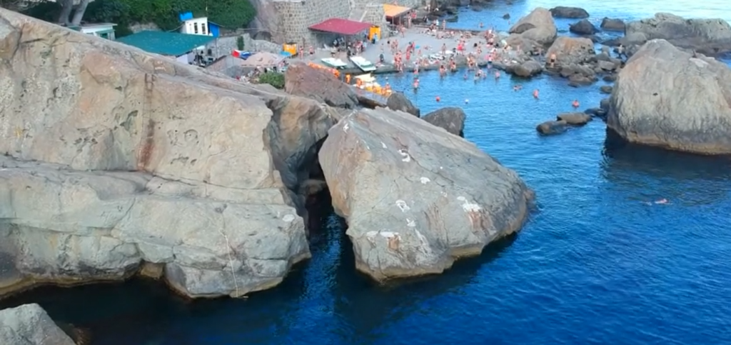 Так еще называют Центральный пляж курорта, который расположился в самом сердце города, вдоль набережной. Он считается самым популярным местом в городе в летнее время, чтобы занять здесь место, придется проснуться пораньше. Пляж бесплатный, за дополнительную плату лишь шезлонги. Также в пешей доступности купальные принадлежности, туалеты, магазины, сувенирные лавки. Пляж здесь галечный, а вход в воду нельзя назвать пологим, поэтому, будучи здесь с детьми, стоит быть осмотрительными. Рядом с центральным пляжем можно найти наш недорогой отель Алушты у моря, который уютно расположился в тени деревьев.
