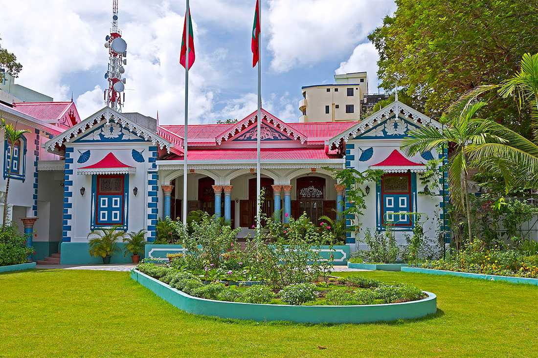 Президентский дворец, расположенный напротив Хукуру Миский, был построен в начале XX века султаном Шамсуддином III для своей семьи. Спустя несколько десятилетий, когда страна окончательно перешла на республиканскую форму правления, дворец был превращен в президентскую резиденцию, и сегодня уже четвертый президент Мальдив встречает здесь важных гостей. Теперь и у вас есть возможность полюбоваться внешней красотой этого чудесного сооружения, построенного в колониальном стиле. Президентский дворец входит в список главных туристических достопримечательностей Мальдив, практически ни одна обзорная экскурсия не обходится без посещения этого места.
