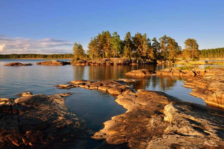 Не менее привлекателен для туристов отдых в Карелии, где находятся одни из самых больших озер России, — Ладожское и Онежское. Учитывая климатические особенности северного региона, планируйте поездку на июль-начало августа, когда воздух прогревается чуть больше +20 градусов. Однако и тут вы не застрахованы от дождей. Вода в озерах всегда холодная, только в самую «жару» мелководье может прогреться для купаний. Отдыхающим предлагается остановиться в турбазах и кемпингах. Организовываются рыбалка, прогулки на катерах по шхерам. На территориях, как правило, есть баня и мангалы.