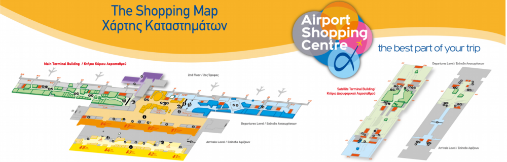 Аэропорт Афин Элефтериос Венизелос (Athens International Airport Eleftherios Venizelos) состоит из двух терминалов: главного терминала и небольшого терминала-спутника, который соединен с основным подземным переходом.