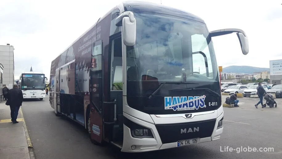 Автобусы от аэропорта Сабиха отправляются каждые полчаса. Первый идет в 4 утра, а последний – в 1:00 ночи. Конечная остановка автобуса находится у парка Таксим Гези. В Хавабас оплата наличными. Ранее компания называлась Havataş.
