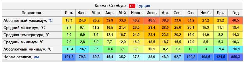 Климат Стамбула — Погода в Стамбуле по месяцам